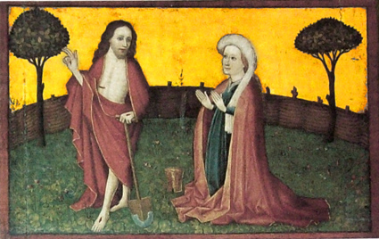 Beispiel für den goldenen Himmel auf mittelalterlicher Malerei, Lorenzkirche in Nürnberg, Seitenflügel des Wolfgangsaltars, um 1450/60